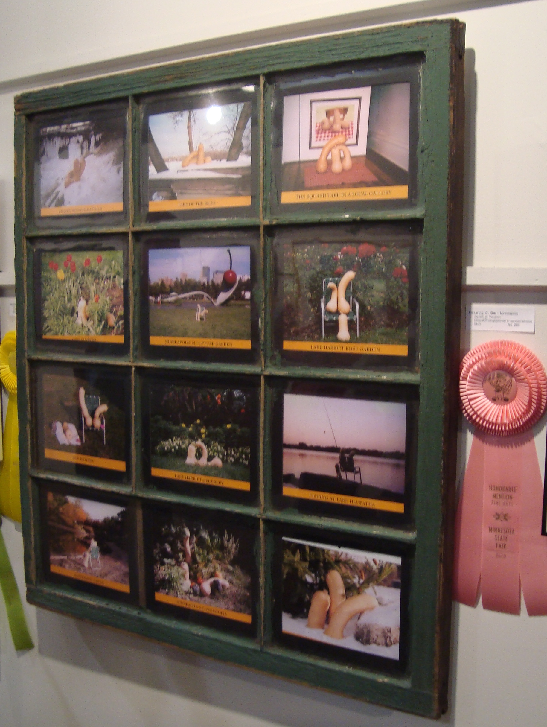 Kim cut up the Squash on Vacation calendar and used a repurposed window from the building renovation to create a full year in a frame. It won Honorable Mention award at the Minnesota State Fair.